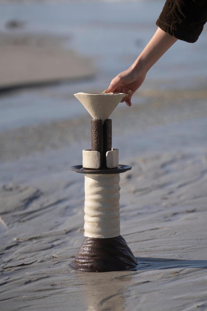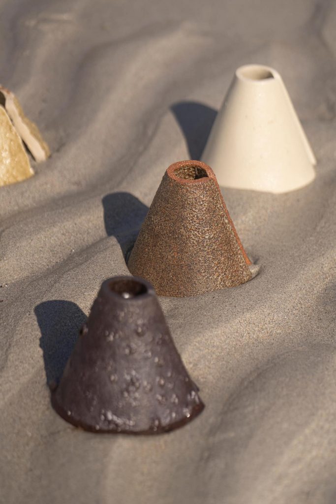Pour célébrer ce patrimoine, je choisis de réemployer ces procédés traditionnels pour produire des émaux pour céramique à base de cendres d’algues. Je développe, en collaboration avec Clémence Desbois (artiste céramiste), une collection de glaçures que nous destinons aux artisans de la région avec qui nous partageons les recettes.