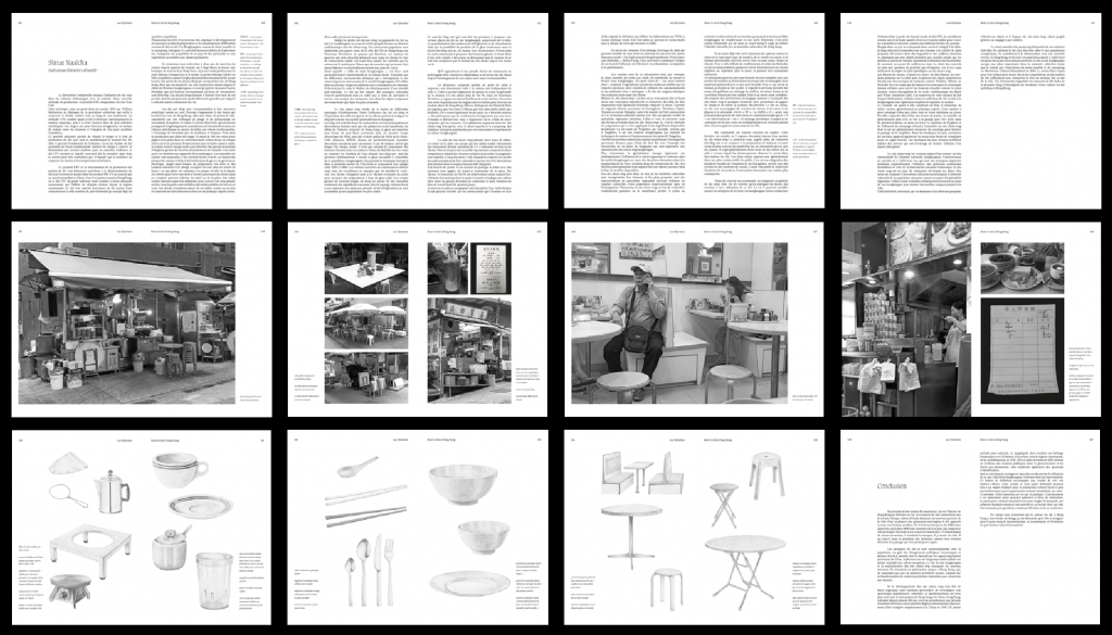 De la colonisation de Hong Kong par l’empire britannique à aujourd’hui, le thé est un témoin discret de l’histoire de la mégalopole. Omniprésent dans le quotidien de ses habitants, les différentes façons de le consommer sont le récit des communautés qui ont migré successivement sur le territoire. Je me rend sur place pour dresser les tableaux des identités multiples de la ville, prenant pour décor différents lieux de restauration, où les pratiques du thé et l’écosystème d’objets qu’ils engagent content chacun une facette de l’histoire hongkongaise. Chaque étude de terrain est accompagnée d’une partie rédigée mêlant histoires personnelle, individuelles et collectives, suivie de photos des lieux ainsi qu’un inventaire illustré du mobilier et des objets porteurs d’identité culturelle.